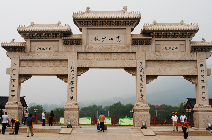 知道少林寺自然是从早年那部同名电影,彼时,嵩山、少室山的巍峨与神秘,少林寺的庄严与武功深深地印刻在了少年的记忆。不过眼前的的嵩山和少室山似乎并不巍峨,除了苍翠的绵延不绝的山脉勾勒出起伏的线条之外,看上去不怎么险峻,至少没有南方的名山大川那么俊朗挺拔,当然,这丝毫遮掩不住少林寺的威名。