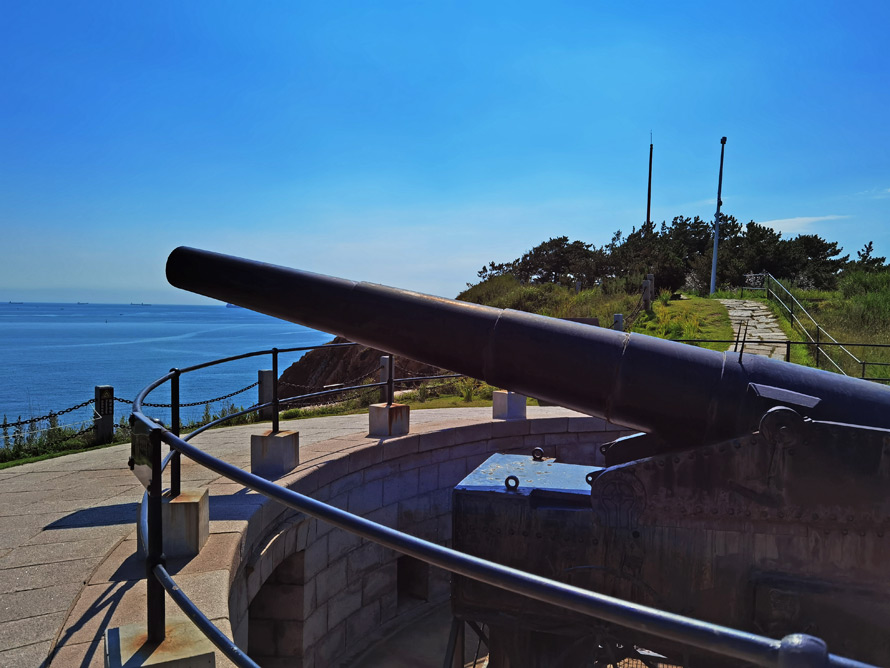 东泓炮台又称东风梢炮台,是刘公岛最东端的炮台,1890年建成,可360度射击,是当时非常先进的后膛来复线式大炮。炮台火力可覆盖刘公岛东部海面与南北两海口,并与日岛及威海湾南帮炮台形成交叉火力,共同封锁威海湾南口。
