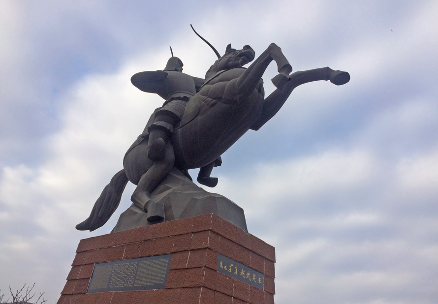 彼时,春秋争霸的环境里,赵国国王雍为了持续强大,摒弃了中原传统的衣冠制度和作战形式,大胆学习北方游牧民族的优点,下令在全国推行“胡服骑射”,一改中原正统的宽袖长袍为短衣紧袖、皮带束身、脚穿皮靴的胡服。变革军制,废弃战车而演习骑射,以骑兵对抗骑兵。由此,赵国建立起汉族历史上第一支独立、庞大的骑兵部队,军事力量日益强大,北灭中山,出击匈奴,成为当时除秦国外国力最强的国家。雍逝后谥号“武灵王”,后人认为,他的军事改革显示出了超凡才略。
