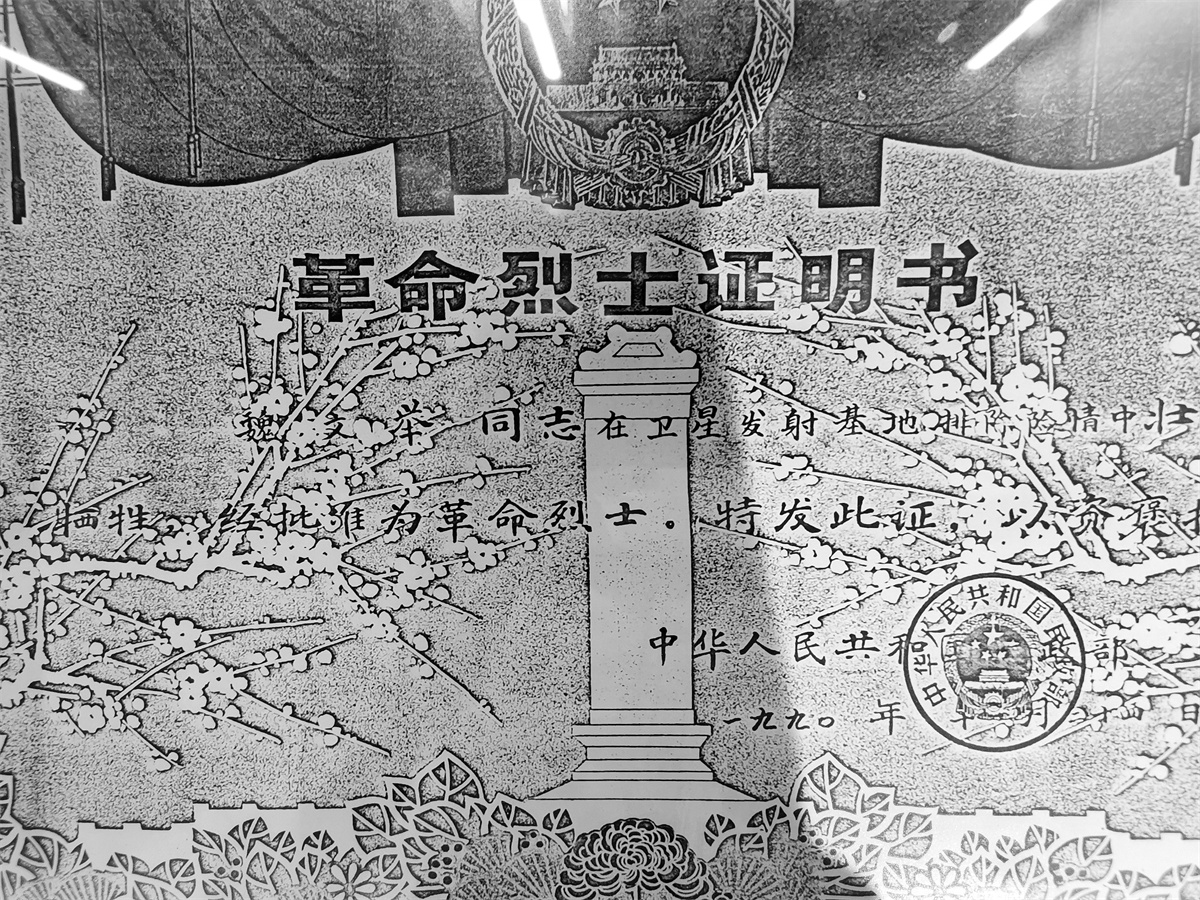 在展馆二层航天人物展区,玻璃柜里陈列的一张烈士证书复印件激起我内心的波澜,泪水止不住地流下来。记得那天我像往常一样回家,发现不少陌生人站在楼下小声地议论着什么,家人告诉我,我们楼下的魏叔叔在发射场地排除事故时牺牲了。我在惊讶的同时深深地感到作为一个航天人,不仅仅是抛家舍业、加班加点,还随时面临着各种各样的危险……。