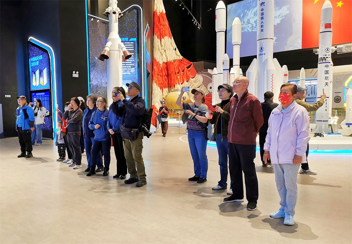 展馆中,一幅幅身处太空遥望地球的画面让每一位参观者既感到神秘新奇又赞叹不已。正是因为无数科技工作者的不懈努力,才使人类从仰望星空到俯瞰地球的梦想成为现实;正是因为几代航天人的砥砺前行和长期坚守,才有了今天中国航天事业的硕果累累、灿烂辉煌。