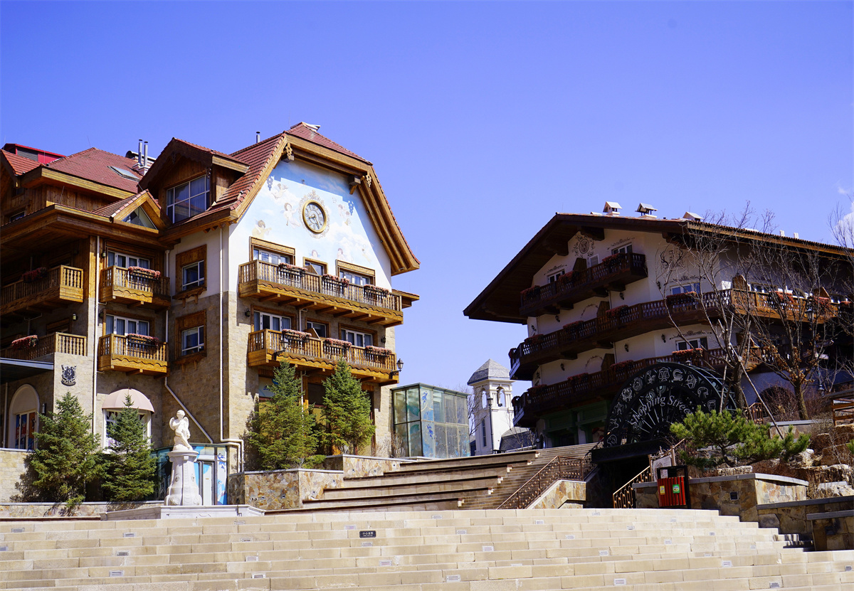 在冬日的积雪尚未完全融化的时候,走进户外天堂的雪国崇礼富龙四季小镇。环中心湖而建的欧式建筑风格装点的小镇,到处洋溢着欧洲的艺术灵感,特别是小镇的中心区域风铃乐谷商业街区,徘徊于此,彷佛走进时空隧道,穿越到阿尔卑斯山脚下。