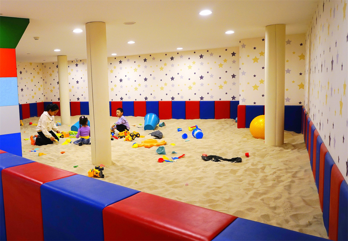 儿童乐园的轨道交通、旋转木马、海洋球、沙池、超市、旋转滑梯、蹦床、小积木、绘画、书吧、张贴画、消防演练等名目繁多的娱乐项目吸引娃儿们的目光,娃儿们在这里运动、过家家、看书、绘画,玩得不亦乐乎。