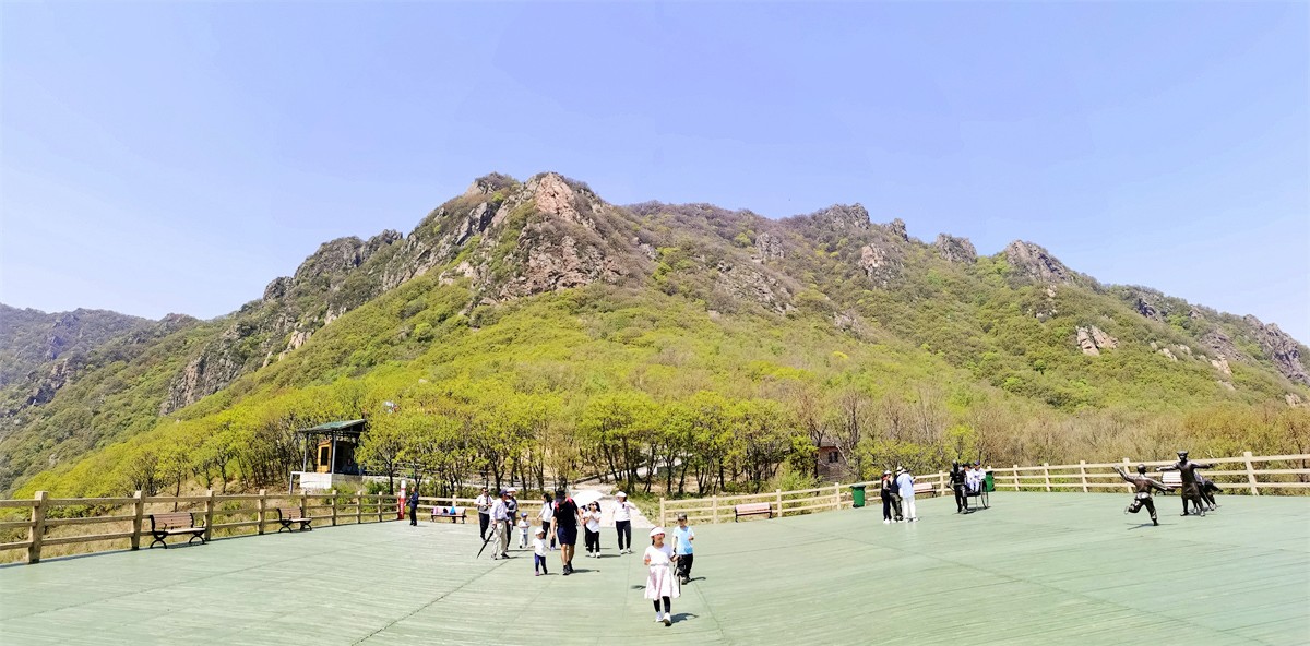 景区的看点有几处:一是下了摆渡车不远处的天马草场,相传这里曾是天仙牧马的地方。站在平台上仰视面前的马头山,犹如簇簇马头攒动,联想到天仙牧马的神话故事,令人心驰神往;二是山顶处的玻璃石岛,这是一处距今1.3亿年前火山爆发而形成的山顶岩石遗迹,也是游客的一个观景台,可以远眺群山,也可俯瞰山谷;三是位于半山腰的侏罗纪森林,这处景观非常适合带娃亲子游,森林深处,有各种形态的恐龙,并能发声嘶鸣,活动头尾,让孩子们展开想象的翅膀;四是浮云桥,这是一座悬挂于两山之间的浮桥,赶上天公作美,走在浮桥上置身于云雾之中,确是一件美妙奇幻的事情。倘若五六月份到景区游玩,还能看到冰河花海,也就是说既能看到漫山盛开的鲜花,也能看到残存的冰河。山门天池是景区中的一大亮点,也是乘坐摆渡车下山的地方。这里的一滩绿水点映着群山,更让游客赏心悦目。