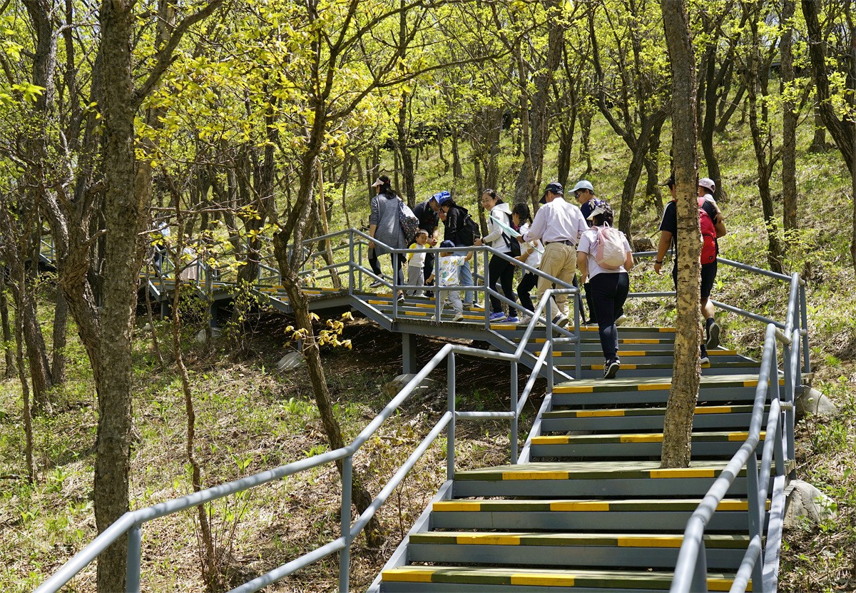在景区中游玩,发现山间步道上不仅有咿咿呀呀的娃儿们,还有拄着拐杖的老者。说句实话,登山观景是一件耗费体力的事情,然而行走在绿水青山中,吸吮清新的空气,走不多远就有可玩的项目、可看的景观,倒也乐此不疲。