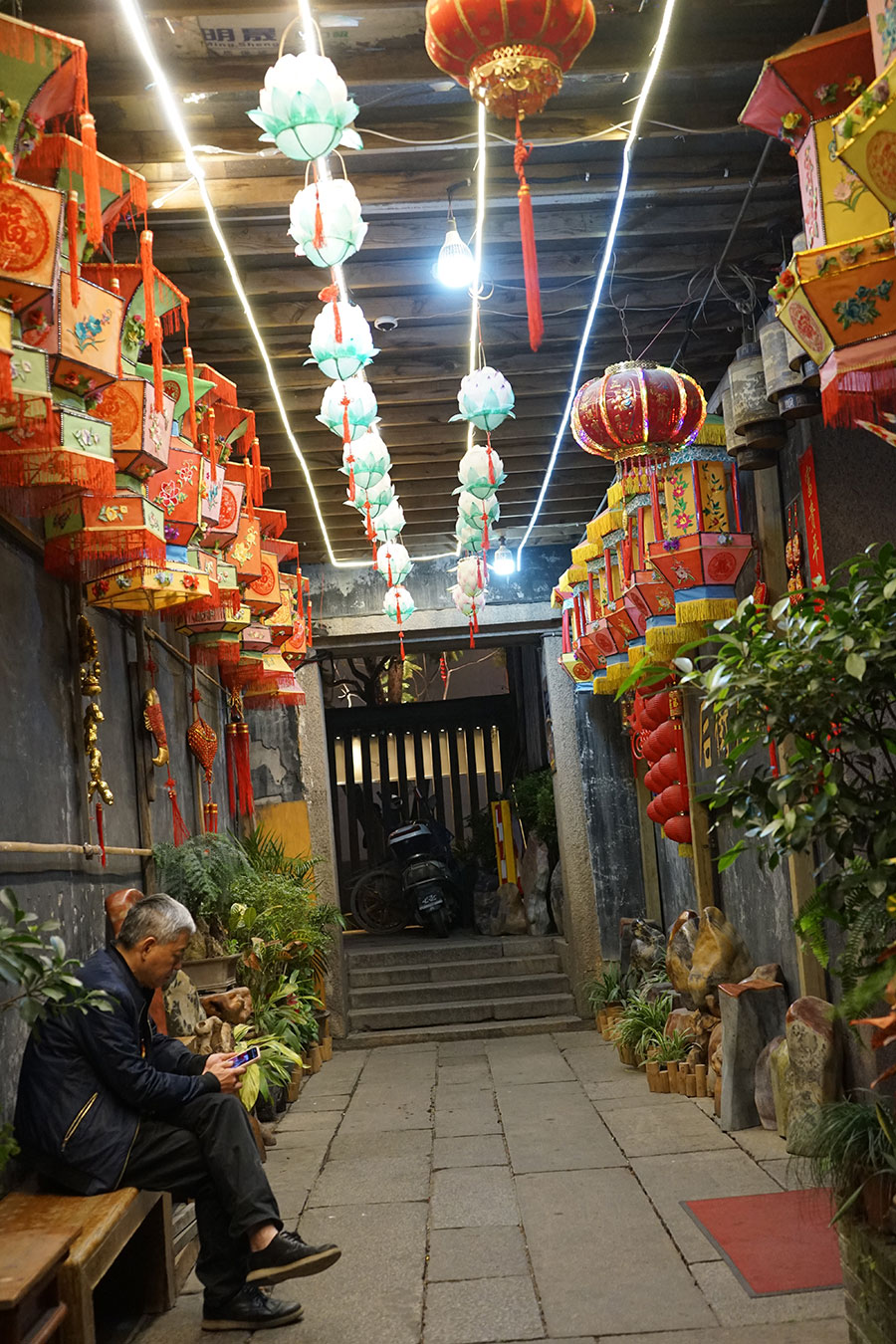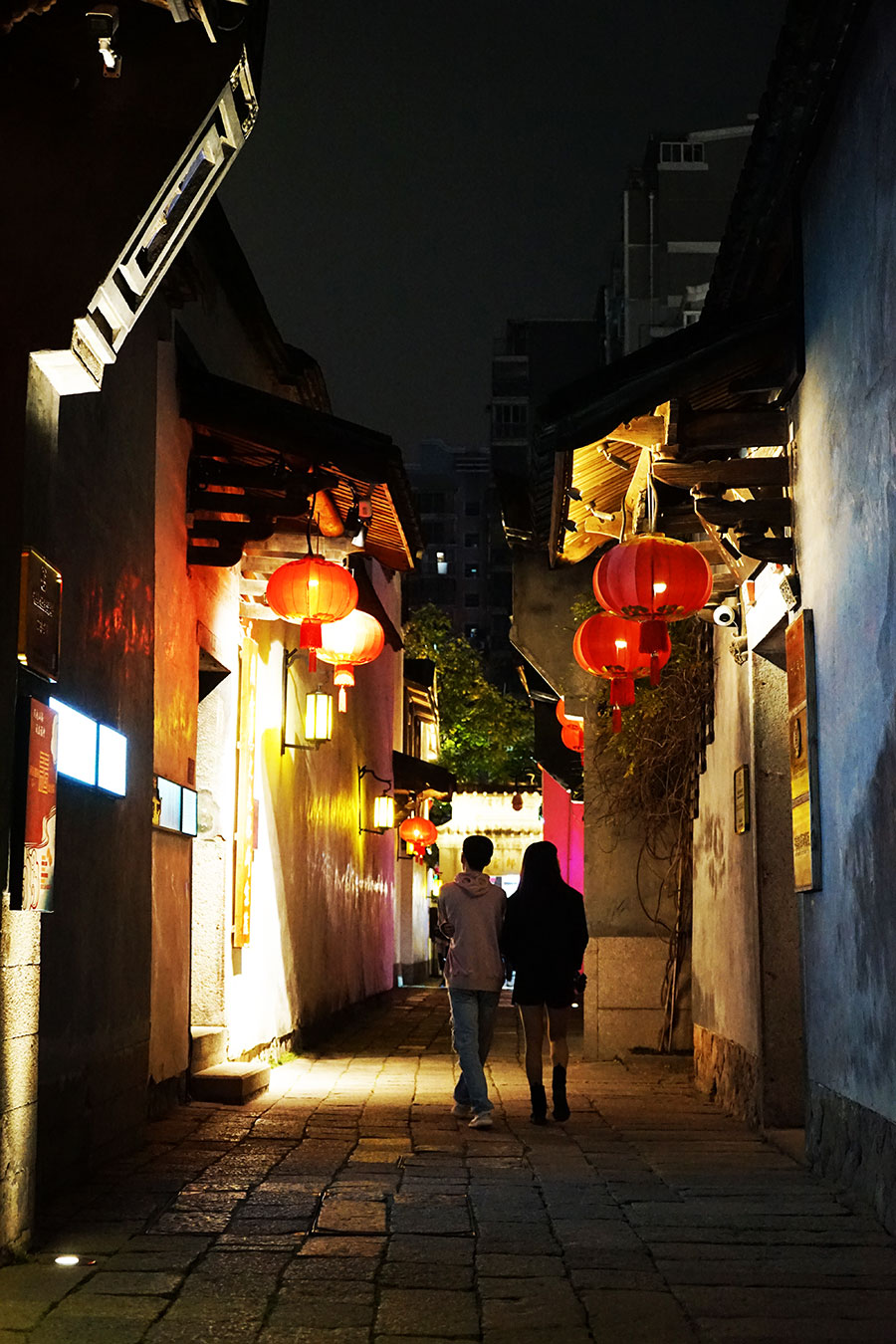 深邃坊巷,曲折悠长,行至幽深处,蓦然回首,牌坊、灰塑、燕尾脊,伴着阑珊灯影,一瞬间,令人恍惚,如同回到了某个年代的旧时光。