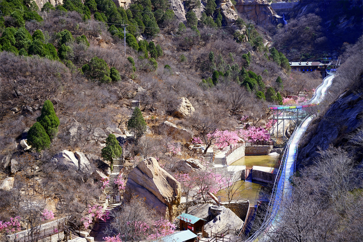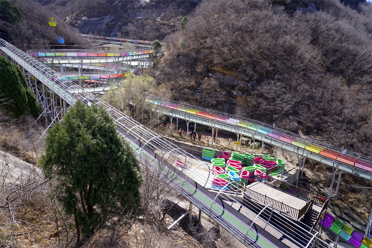 景区中高山瀑布的奔流不息,山谷潭水的碧波荡漾,高山滑水皮筏子的一往无前,玻璃天桥、栈道上游人的战战兢兢,构成了一幅幅生动的画面。被七彩滑道点缀的山谷,随山势而建放射着璀璨光芒的水晶长城,还有那映照着蓝天、白云的天空之镜带给游客新奇之感,更是摄影爱好者创作佳品的好地方。