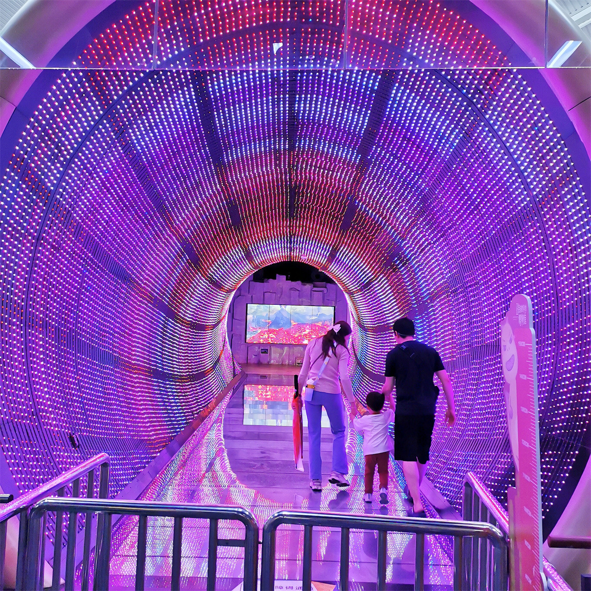 除了楼上楼下可供娃儿玩耍的地方外,正佳广场还在各楼层通往卫生间的走廊之中建立了不同内容的博物馆,如能源探秘馆、好奇自然馆、生命演化馆、人体奥秘馆等,让每一位走进正佳广场的游客都能随时随地获取知识。