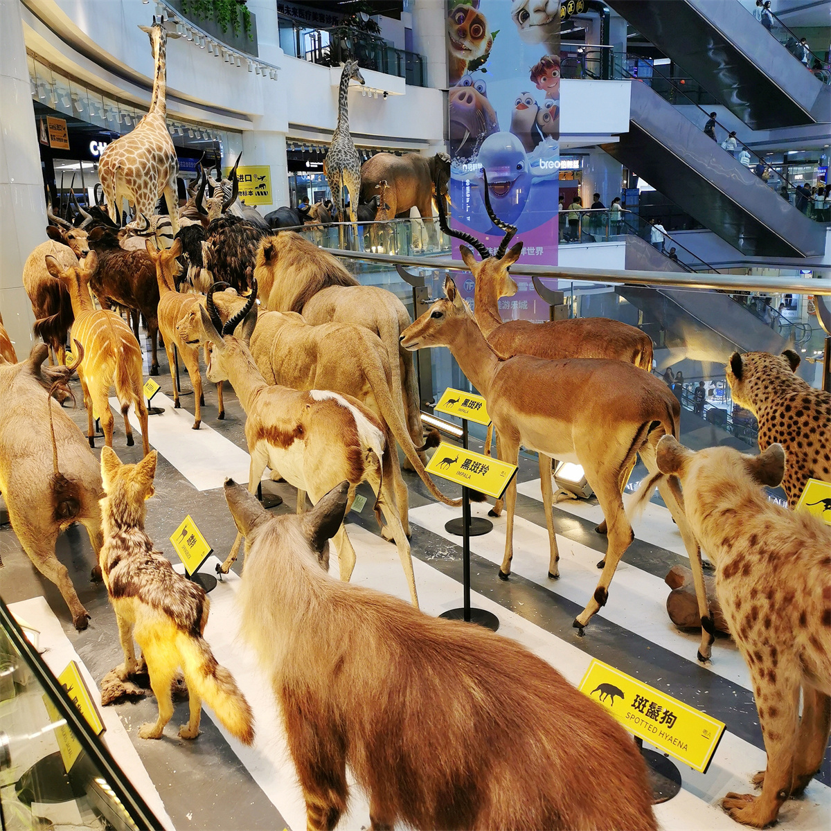 来自非洲的大象、斑马、长颈鹿、羚羊等动物标本展,也是吸引娃儿们目光的地方,在与动物标本近距离接触中,辽阔的非洲大草原已经植根在他们的脑海之中。