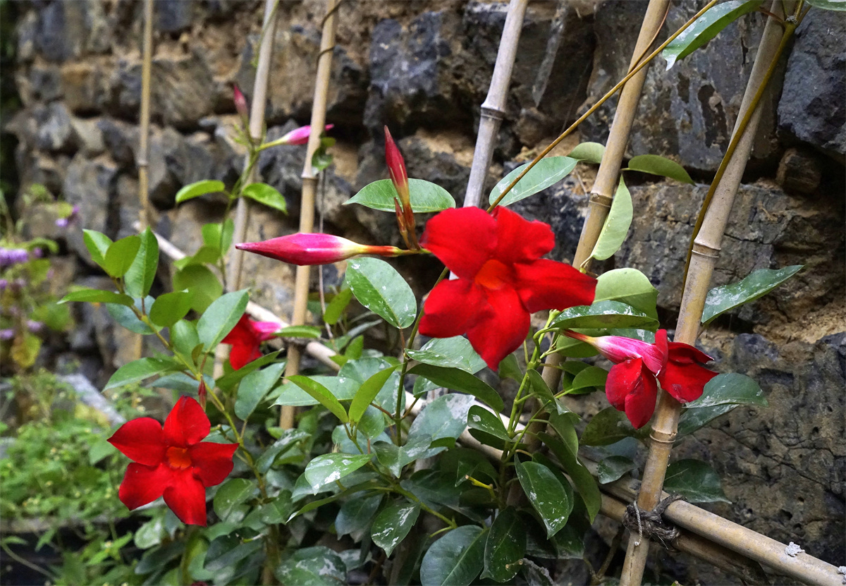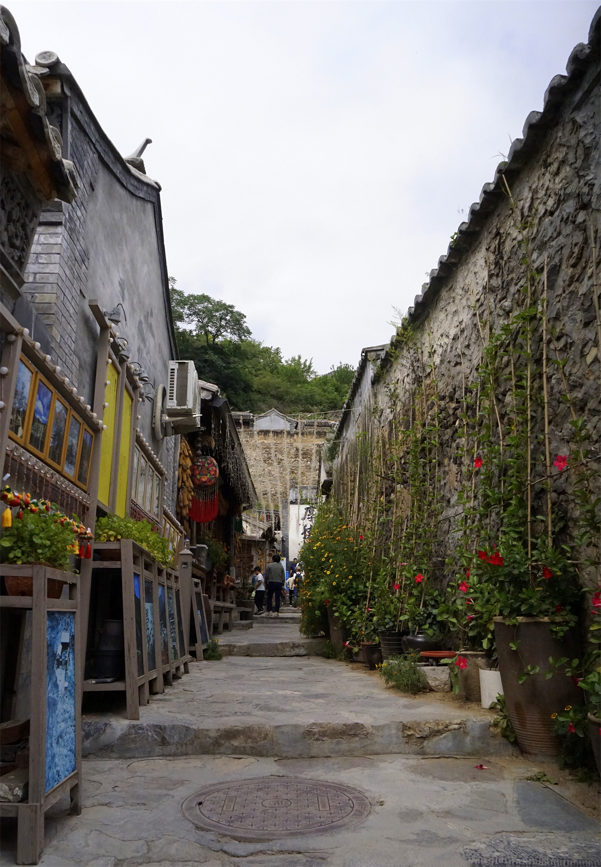 小巷深处,拾阶而上,处处新鲜,石头墙上绽放的鲜花,墙边一溜大小不一、形状各异的陶瓷瓦罐让人们很自然地联想起爨底下村的“爨”字。