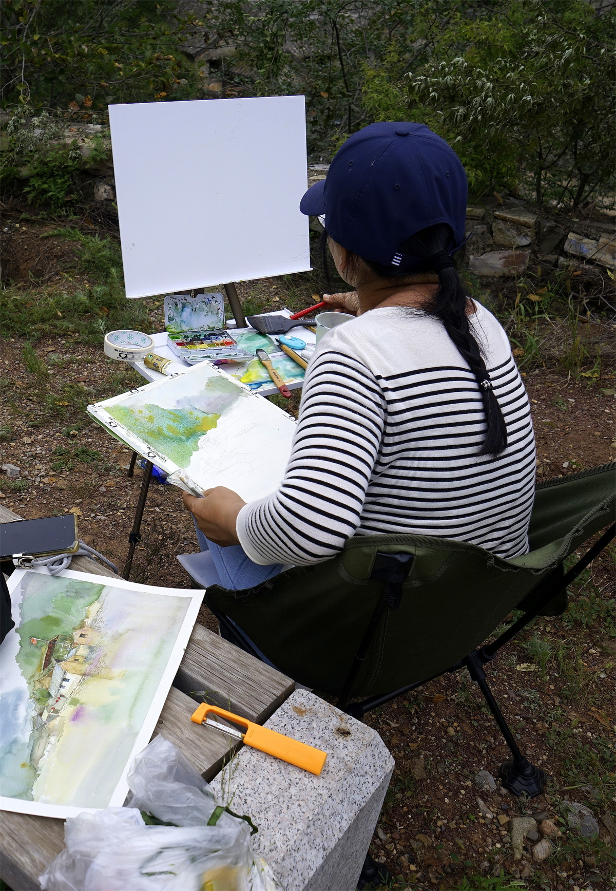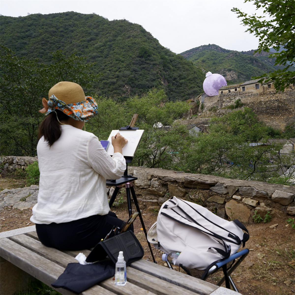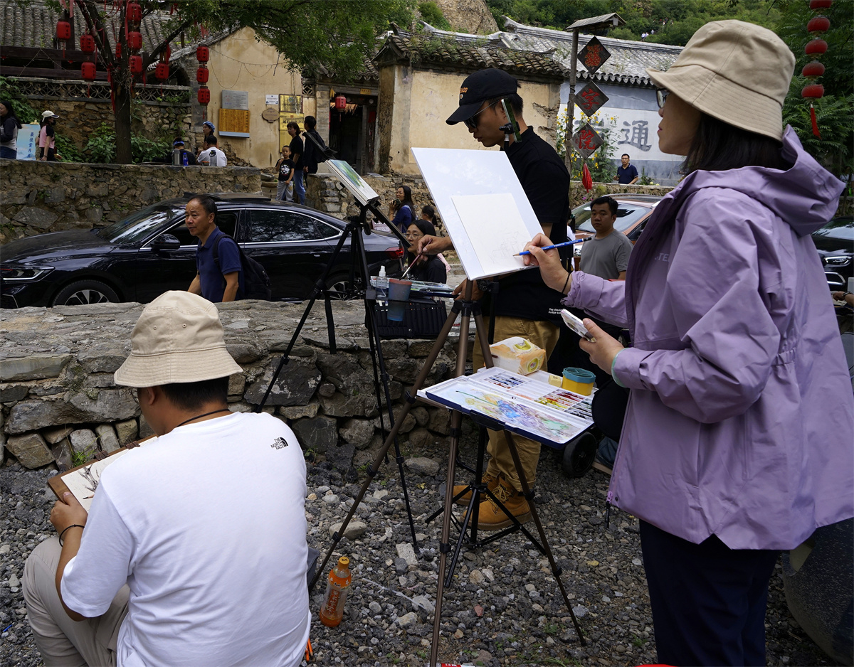 在村子的临街处、在去往观景台的半山腰处多次看到美术和摄影创作者在那里潜心创作。他们痴迷于群山古村的美景,沉醉在古老与时尚的交替中,用心地记录下这里的唯美画卷。