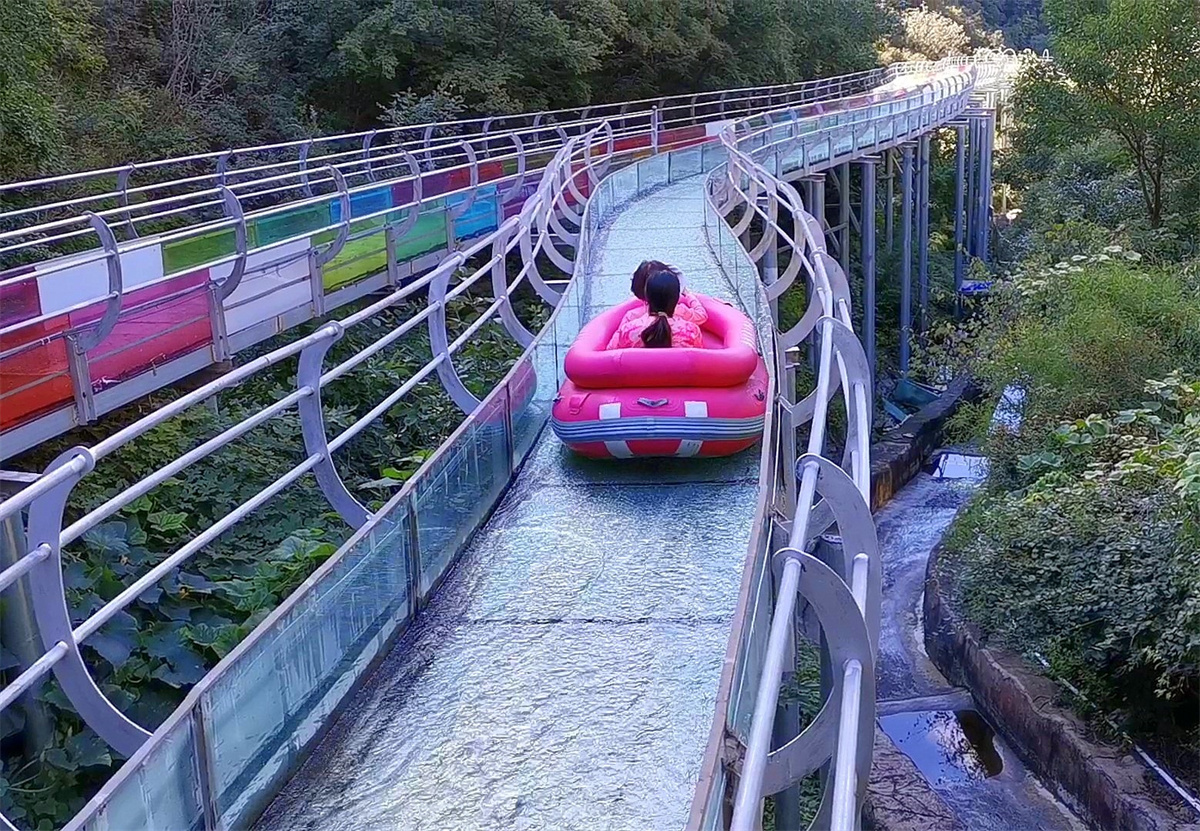 清凉谷景区,惊险刺激项目居多,玻璃天桥、玻璃栈道、高山漂流、滑索飞渡、飞天魔毯等吸引众多喜欢探险,乐于寻求刺激的年轻人。