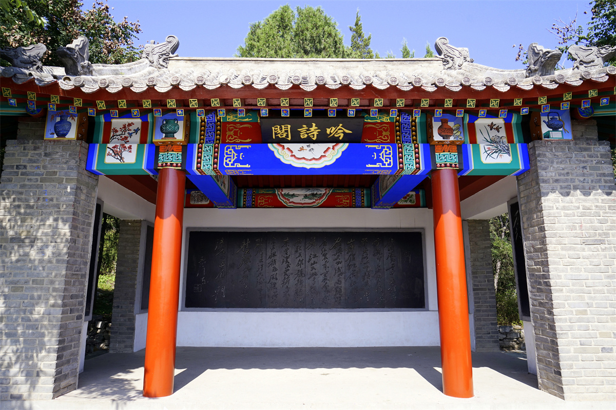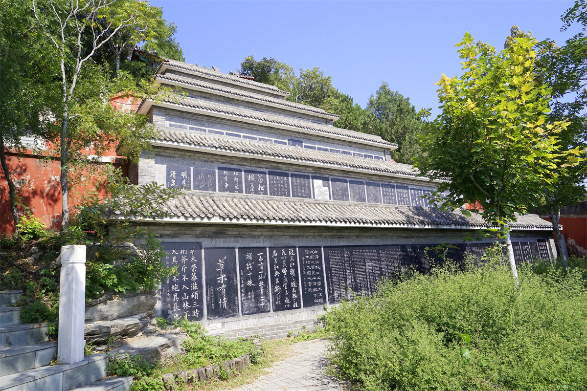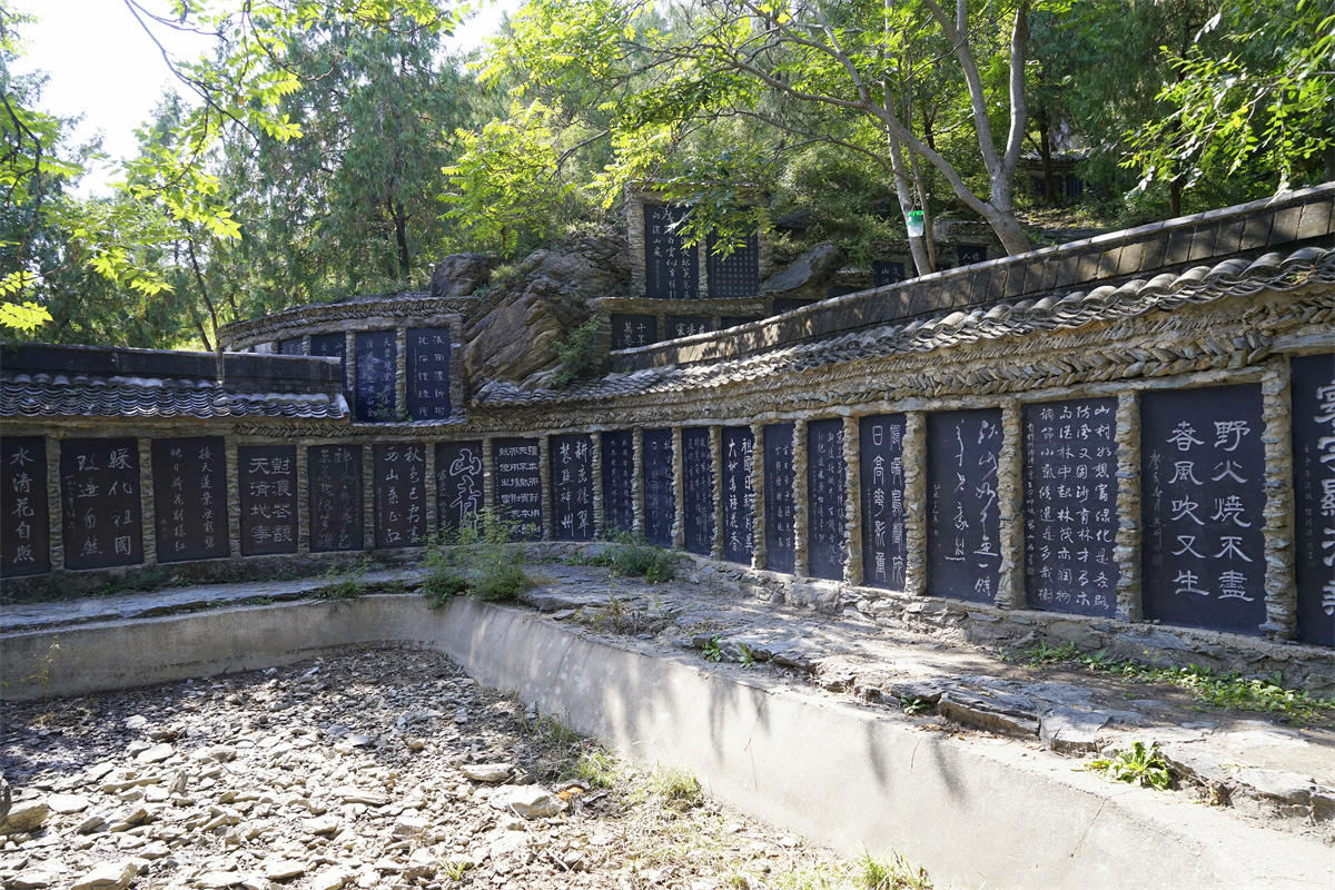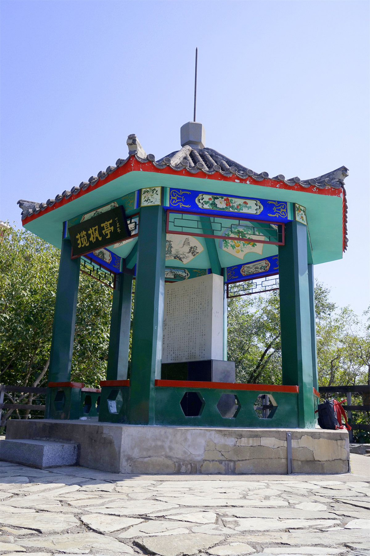 接近山顶有艺术碑墙、吟诗阁,再往上走就是佘太君庙、望京楼。望京楼旁有“揽枫亭”,是秋日里赏红叶的最佳点位。天高气爽,观山望景,视野开阔,一览无余。