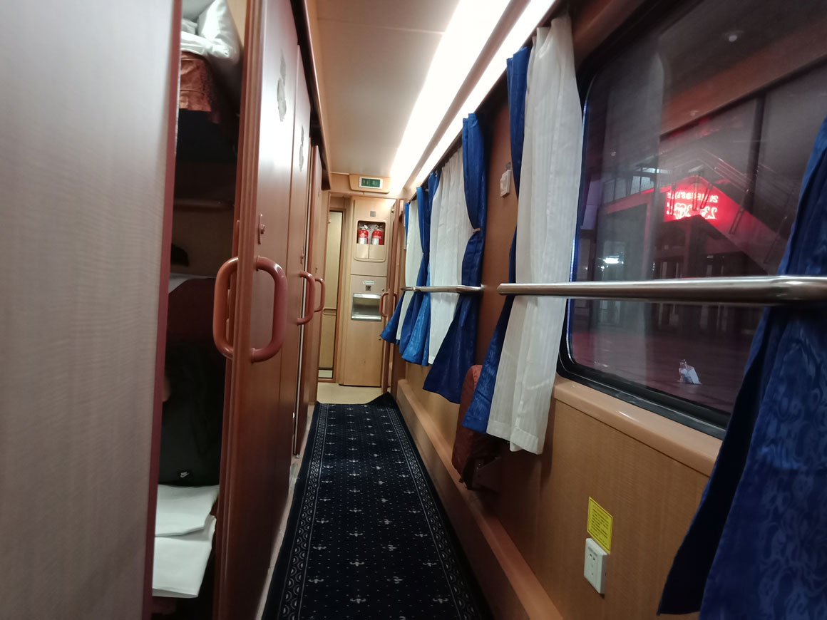 京津冀旅游专列卧铺走廊。