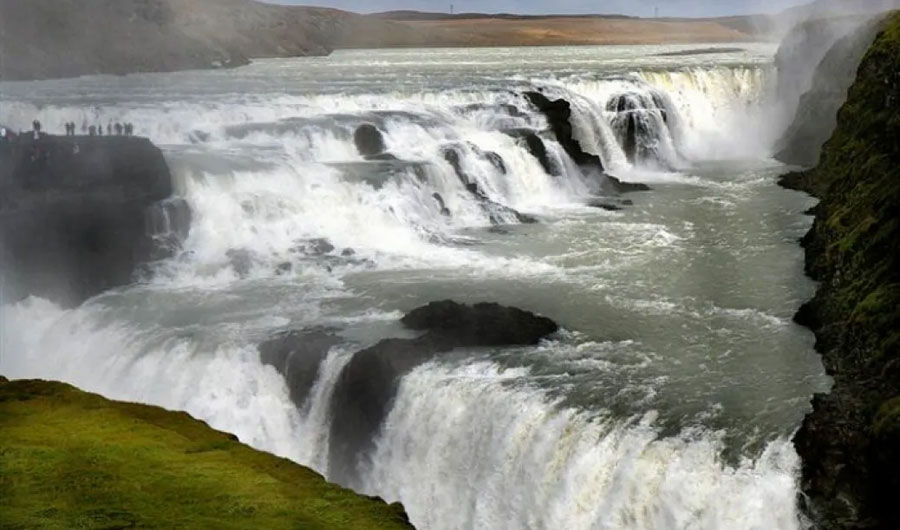 最后是黄金瀑布。那瀑布如同一条金色的巨龙,从高处奔腾而下,发出震耳欲聋的轰鸣声。水流撞击在岩石上,溅起无数水花,像是无数颗钻石在阳光下闪烁。我站在瀑布前,看着那奔腾的水流,心中充满了震撼。这是大自然的力量,是时间的见证。我仿佛看到了冰岛的历史,从冰川时代到如今,这片土地一直在经历着变迁,却始终保持着它的美丽与神秘。