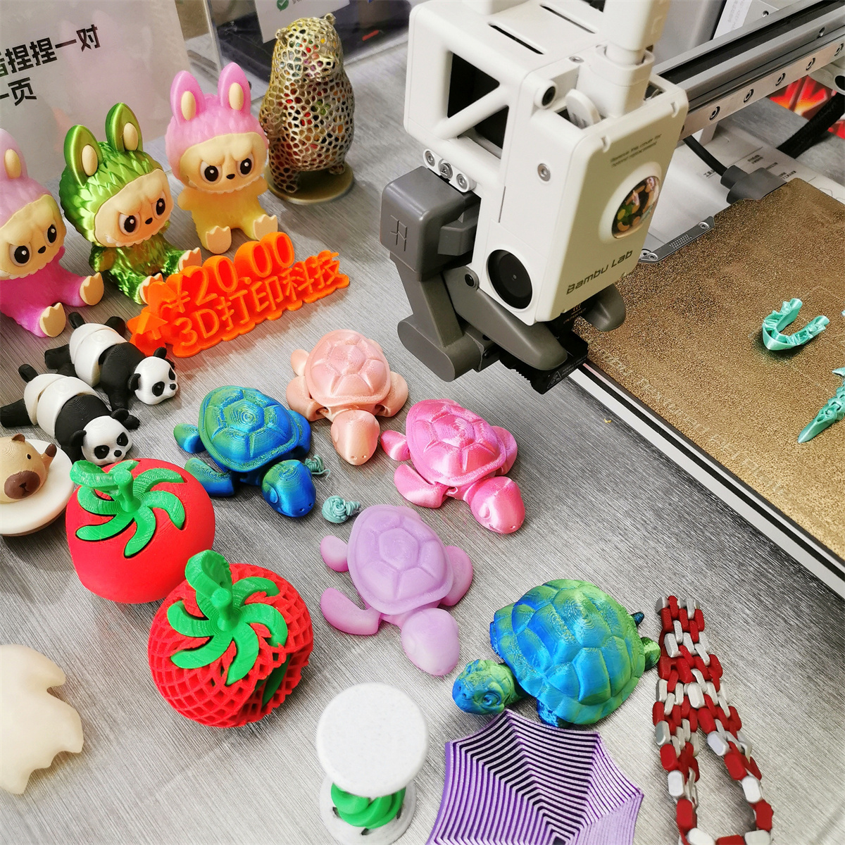 3D打印机前更是围满了孩子。一个个精美小物件从打印机中“诞生”,成为孩子们爱不释手的玩具。只要心中有想法,招财猫、蜿蜒的小蛇、爬行的乌龟等形形色色的造型都能被打印出来,让人感叹科技的“无所不能”。