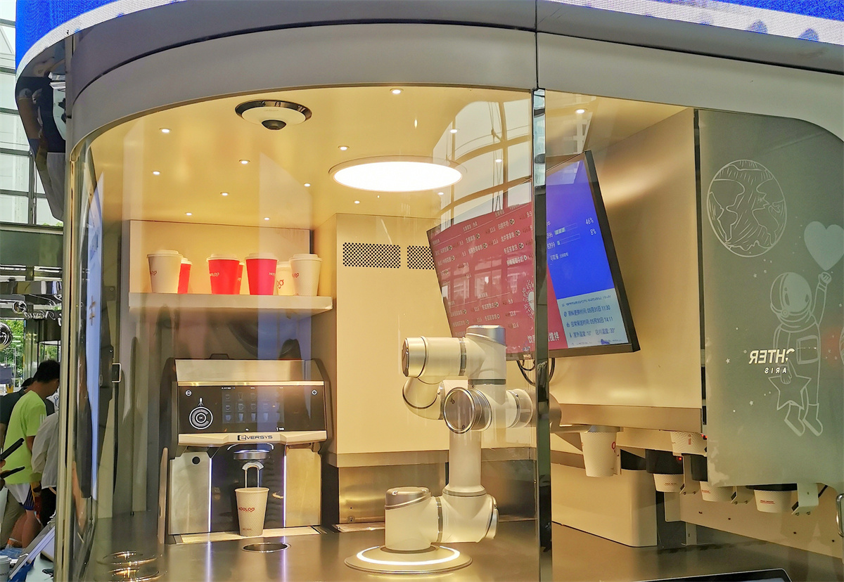 HOOLOO呼噜咖啡机器人的展台前同样人气高涨。在不大的空间里,机器人有条不紊地“坚守岗位”,能制作17种咖啡饮料。点上一款,不到2分钟就能拿到手,高效便捷的服务赢得不少人点赞。