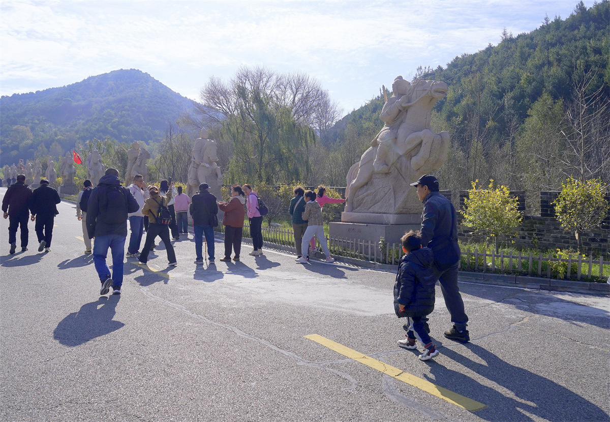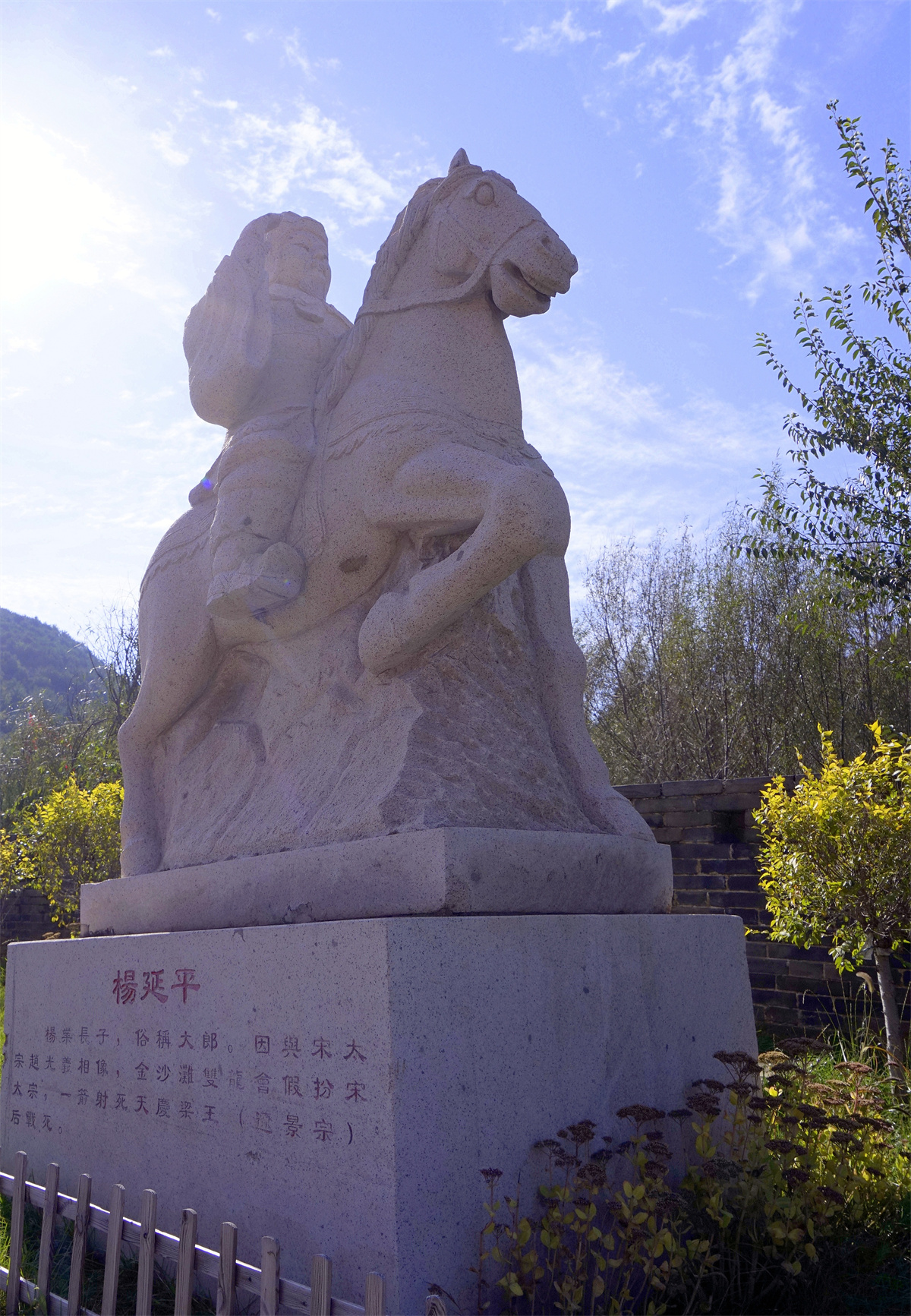 继续驱车上行,“雁门关”的城楼进入视野。踏入景区,最先迎接游人的并非古老的关隘建筑,而是一片错落有致的杨家将雕塑群。这片雕塑群以杨令公为核心,向两侧延伸开去,佘太君身披战甲、手持令旗,虽为女子却透着不输男儿的刚毅;杨六郎腰挎宝剑、眉头微蹙,似在思索御敌之策;每一尊雕像的衣袂褶皱、铠甲纹路都刻画得细致入微,仿佛下一秒便会迈步向前,奔赴战场。
