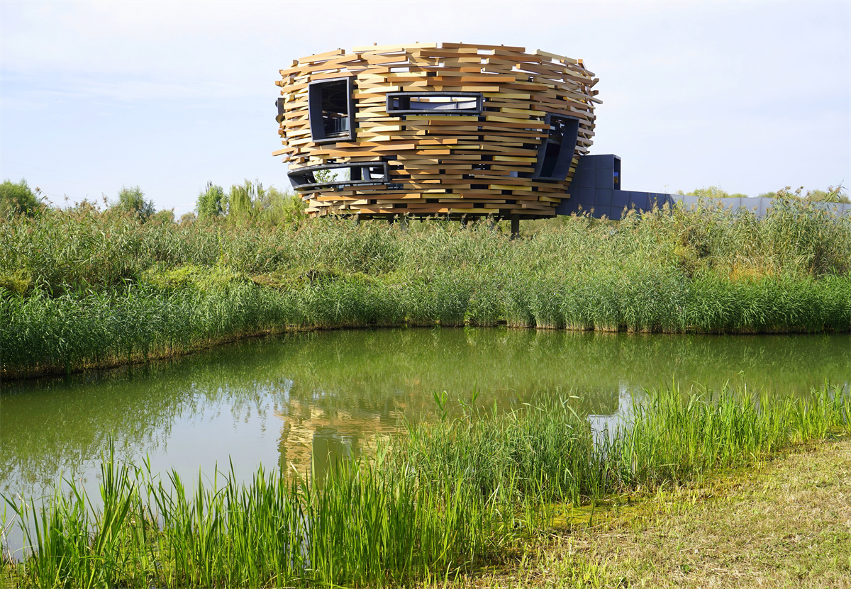 造型独特的茑屋,是建设在湿地上的木质建筑,远远望去如同一个巨大的鸟巢。这里不仅是瞭望湿地、观赏鸟类的绝佳地点,也是拍照打卡的热门场景。走累了,坐在茑屋的座椅上,聆听湖中水鸟的清脆鸣唱,疲惫感瞬间消散。