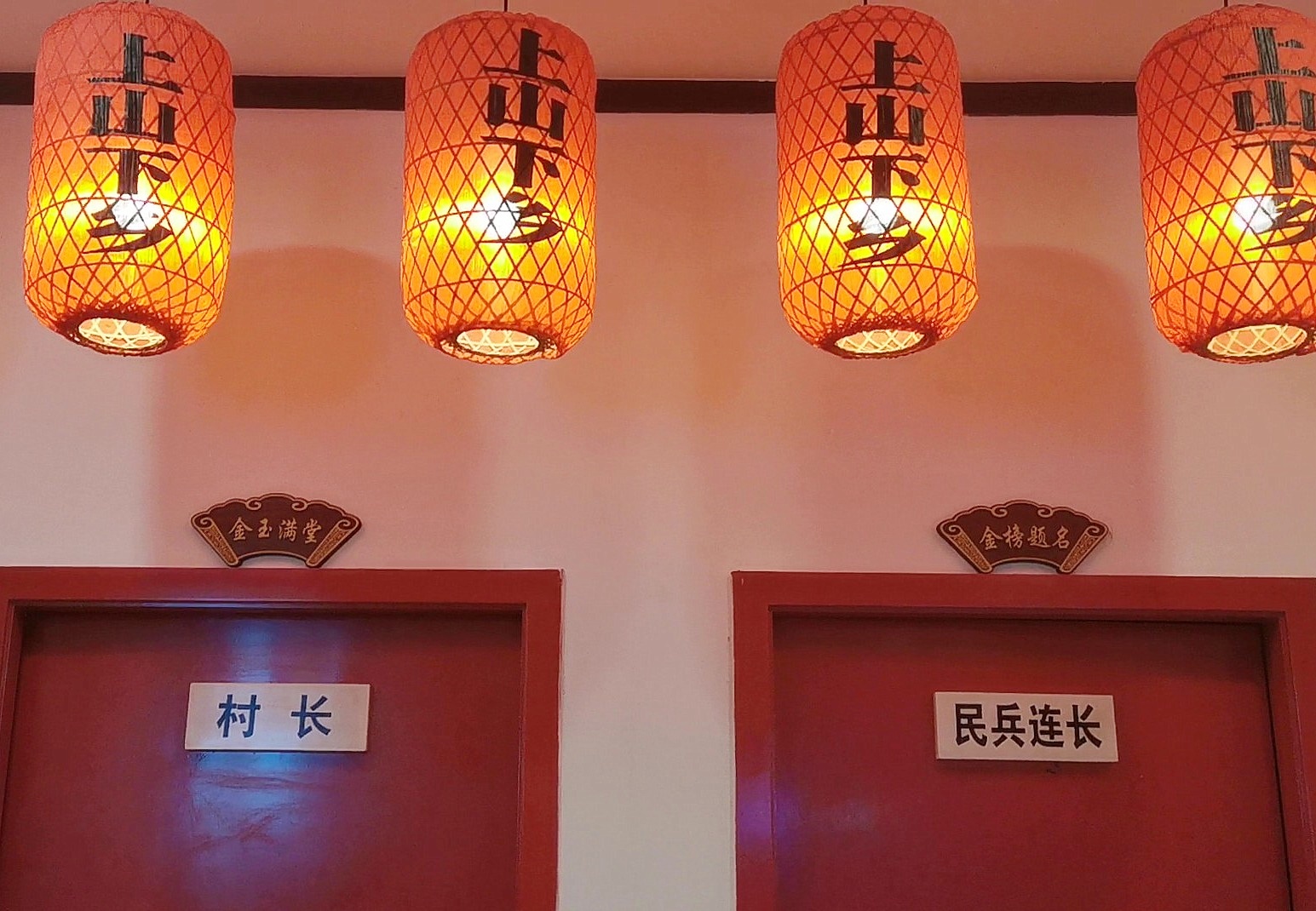 这家以知识青年“上山下乡”经历命名的东北农家菜馆,内部装饰得格外红火。竹编灯笼上“上山下乡”四个大字格外醒目,既承载着一代人的共同记忆,也轻易唤醒食客对往事的追忆。就连包间也以“村长”“民兵连长”“会计”命名,满是时代印记;墙壁上悬挂的领袖像、记录当年岁月的老图片,更像无声的讲述者,向每一位进店的人诉说着曾经的故事。