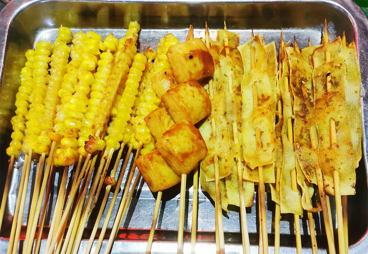 不同食材的烧烤各有风味,让人记忆深刻:羊肉串的醇香、鸡肉串的焦香、生蚝的蒜香,每一口都极具特色。网红玉米粒和鱼豆腐更是不容错过,烤制后的玉米粒蘸上小料,淡淡的甜味与蘸料香在口腔弥漫,瞬间勾起儿时烤玉米的记忆,却又多了几分新意;鱼豆腐的鲜香则格外开胃。即便第一次尝试的烤韭菜嚼着费劲,也因新奇感让人印象深刻。丰富的食材带来多样体验,让这场美食之旅成为难忘的回忆。