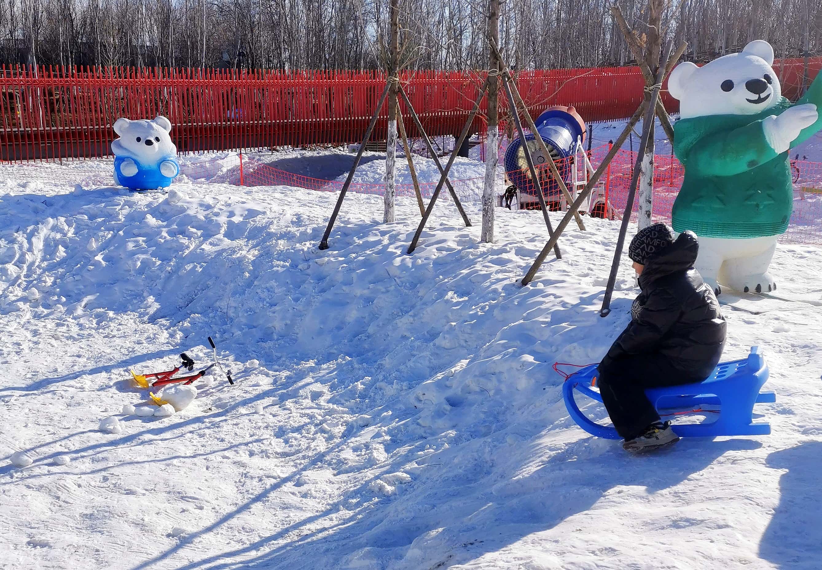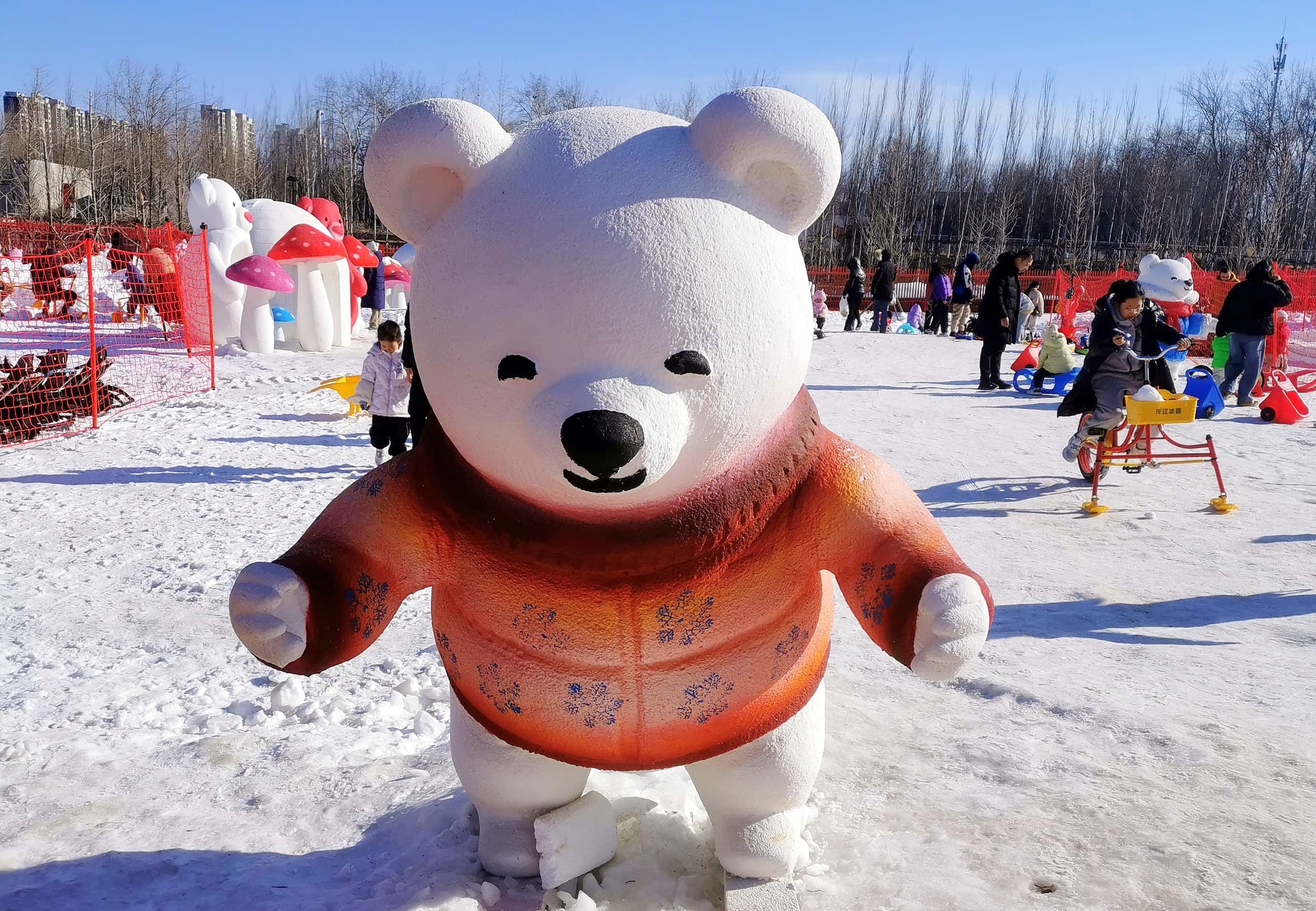 这片人工雕琢的雪场里,憨态可掬的动物造型格外吸睛——有的张开“怀抱”,好似刚从雪坡俯冲而下要与游人相拥;有的昂首凝望远方,仿佛在热情呼唤:“快来呀,这里超好玩!”