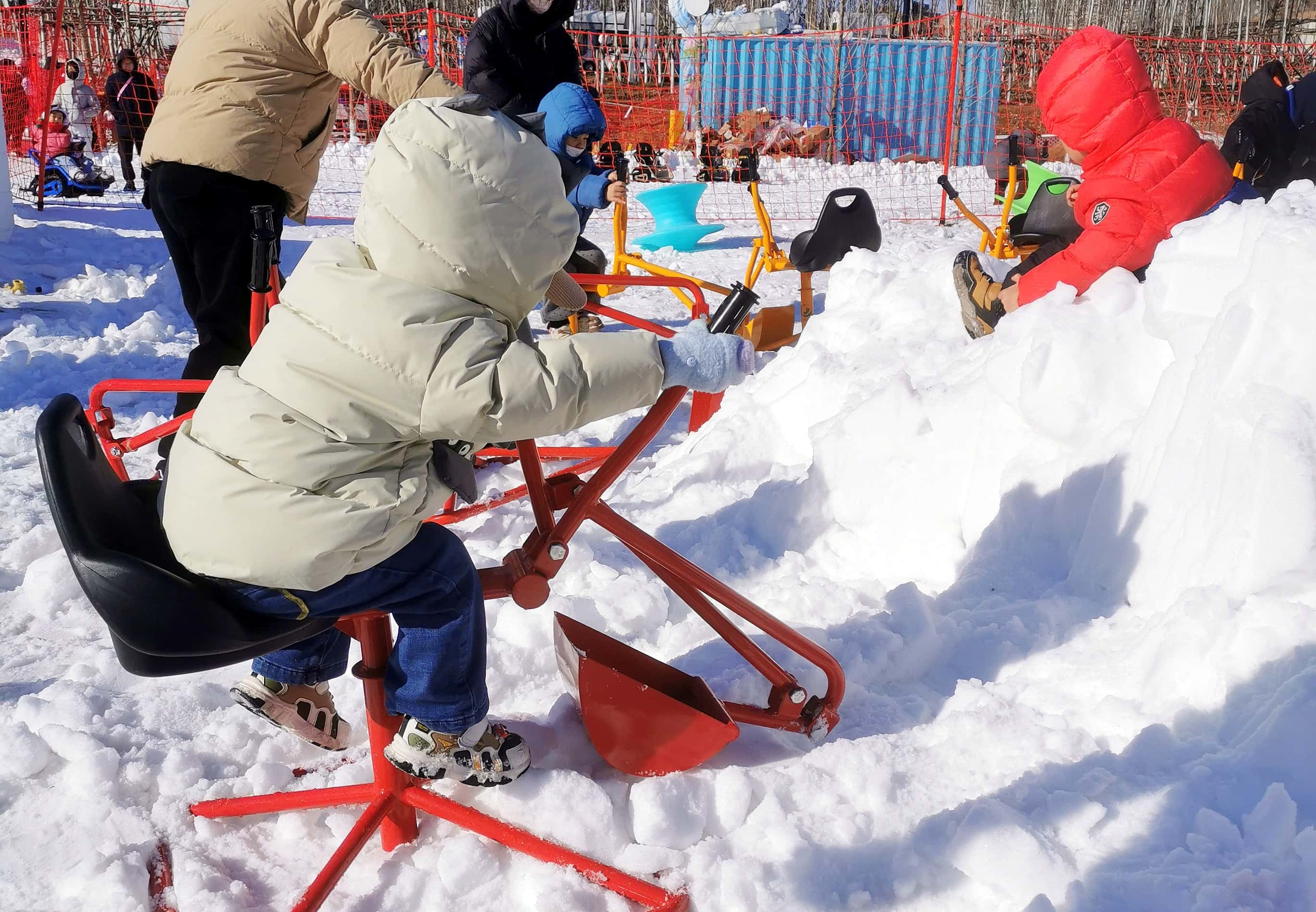 雪场专为孩子们打造了缤纷游乐项目,让人跃跃欲试:坐上雪圈感受风驰电掣的速滑快感,驾驶雪地履带车肆意驰骋,跨上雪地摩托绕场兜风,钻进悠波球翻滚撒欢,操作雪地挖掘机体验童趣,或是坐在冰车上滑行,尽情触摸冰雪世界的神奇与欢乐。
