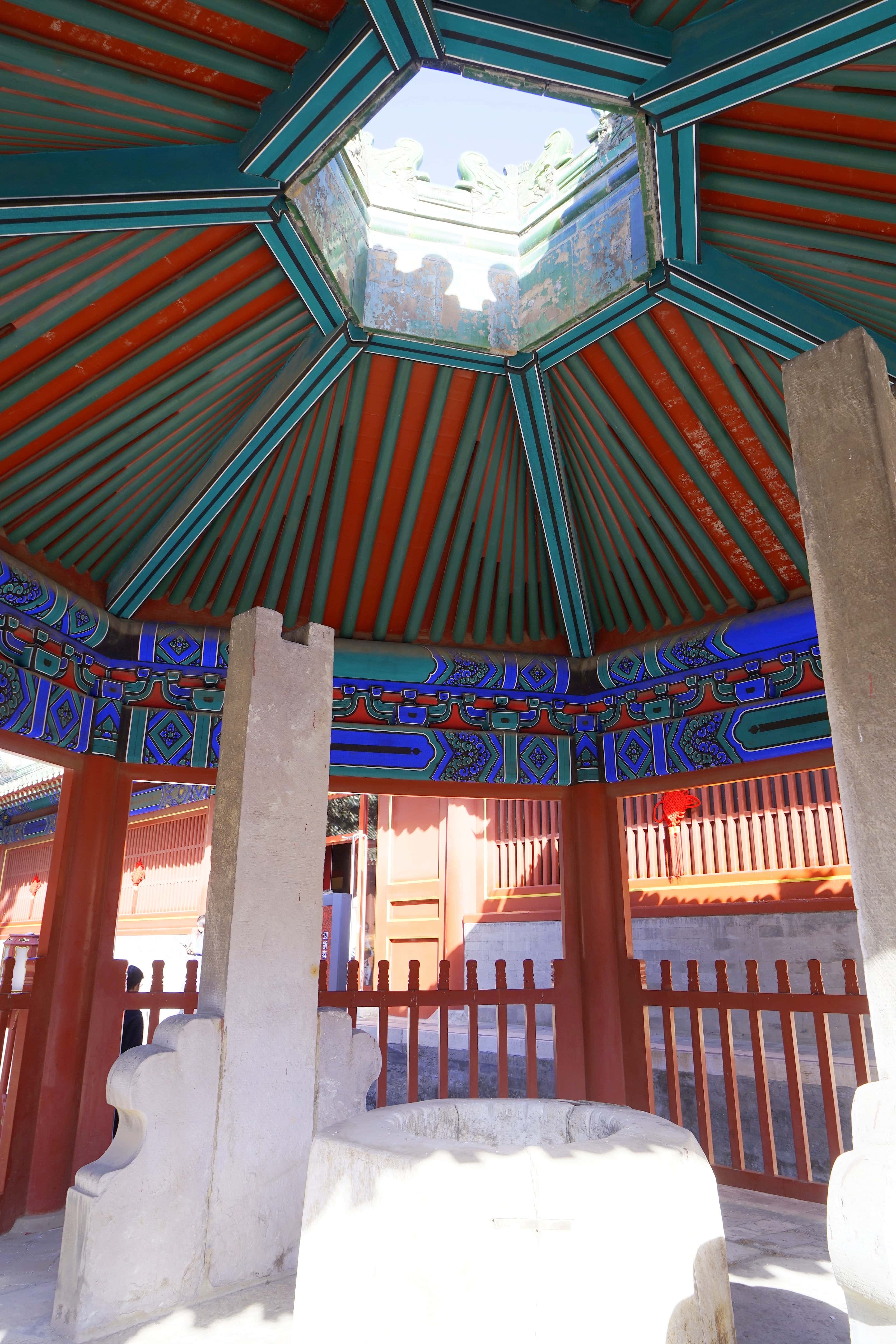 看完文物展后,回到祈年殿的中轴线上,沿中轴线一路向南,依次游览皇穹宇、圜丘坛。这里不仅藏着诸多天坛特色景致,还是拍照出片的好地方,千万别错过成贞门旁的九龙柏,这棵有着600多年历史的古树,静静见证着天坛的岁月更迭。