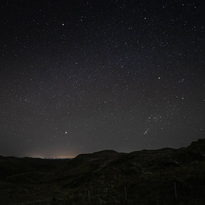 起初,我只是觉得天边有一团云雾状的形态,比周围的夜色稍显朦胧。直到 Siân 和 James 兴奋地压低声音惊呼,我才反应过来——那是银河。